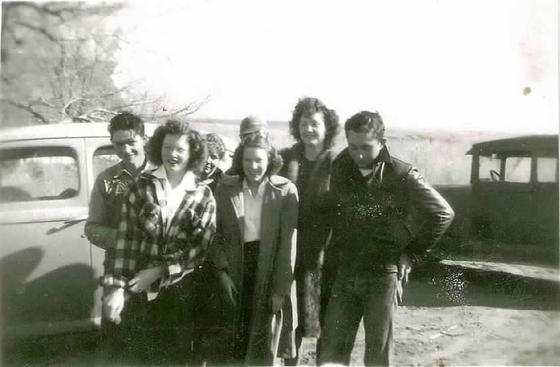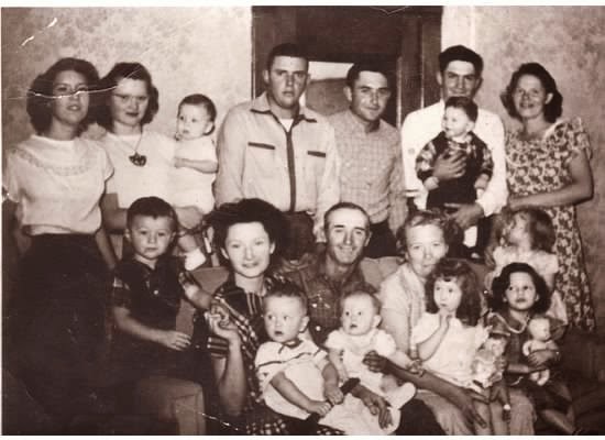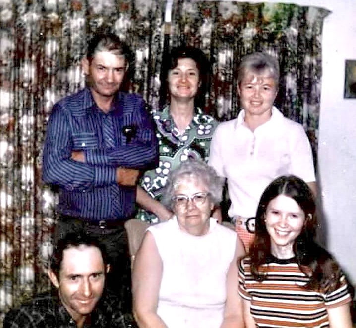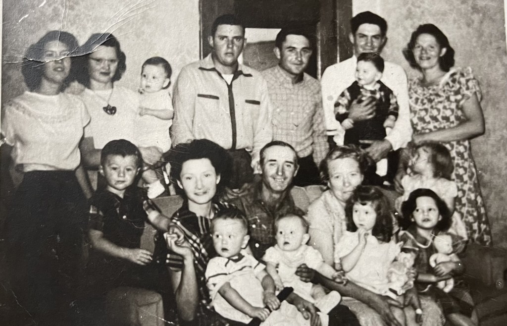My sister Lila was home for a visit. My brother was home from Korea and the family wanted a picture. The next day, Lola ( top row far left) would be taken to the hospital and diagnosed with Polio.