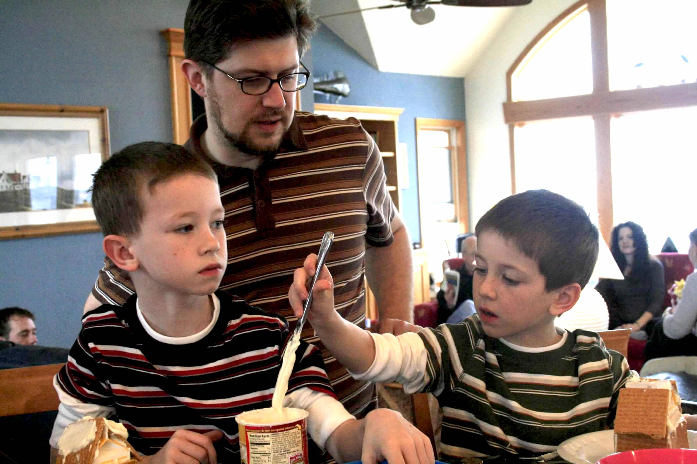 Emily is a teacher. She majored in Elementary and Special Education, but it’s just in her blood (which is what makes her a great homeschooling mom). She will turn any situation into a teachable moment. Like the time she was visiting Joy and Josh after they had moved into their new house (the one where she had spent hours scraping off wallpaper and painting the wall. And when Josh and Joy were short of help on moving day, Emily’s parents showed up to help – because they are awesome like that). But on this crisp autumn day, they started the first fire of the season in the wood burning stove which had gone unused for who knows how long. Before long the chimney was on fire, the room filled with smoke and the smoke alarm began to shriek. Emily grabbed the toddlers and removed them from the room. “Abi, do you know what that sound means?” she asked three year old Abi, ready to offer up a lesson on fire drills and safety. “Dinner’s ready?” Abi suggested.