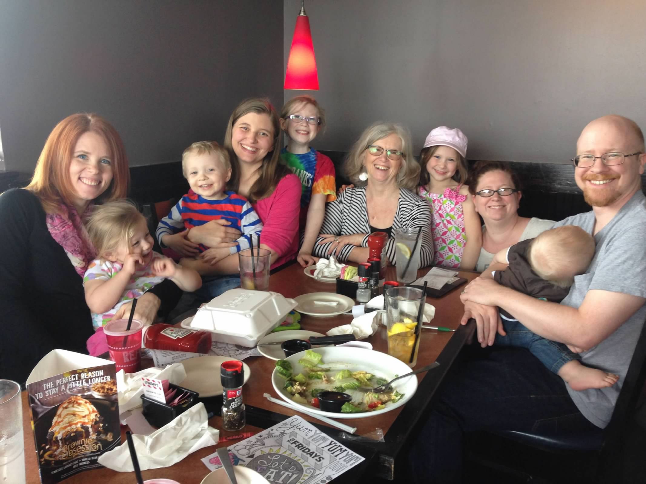 “So my mom is your daughter?” Right. “And Tabi is my mom’s sister and your daughter and my aunt?” Right. “And Sean is Jackson’s dad and my mom’s brother, and your son, and my uncle?” Right. “And Marge is Sean’s wife, and Jackson’s mom, and your . . . ?” My daughter-in-law.” So my dad is my grandma’s son, and my mom’s husband, and Uncle Joey’s brother and your outlaw?” Right!!