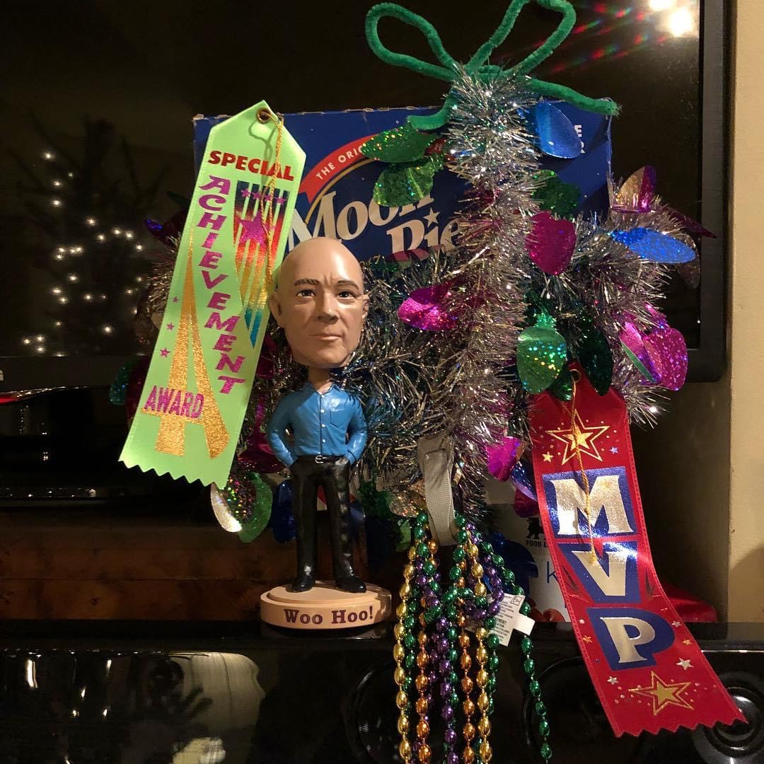 There is the Woo-hoo Award, chosen each year by the Star Chamber and awarded to a staff member as a way to roast him or her at the annual Christmas party where we packed everybody into our living room and ate chili and cinnamon rolls.